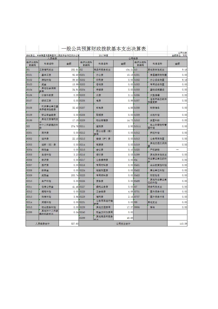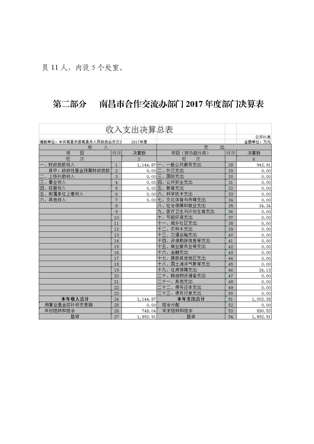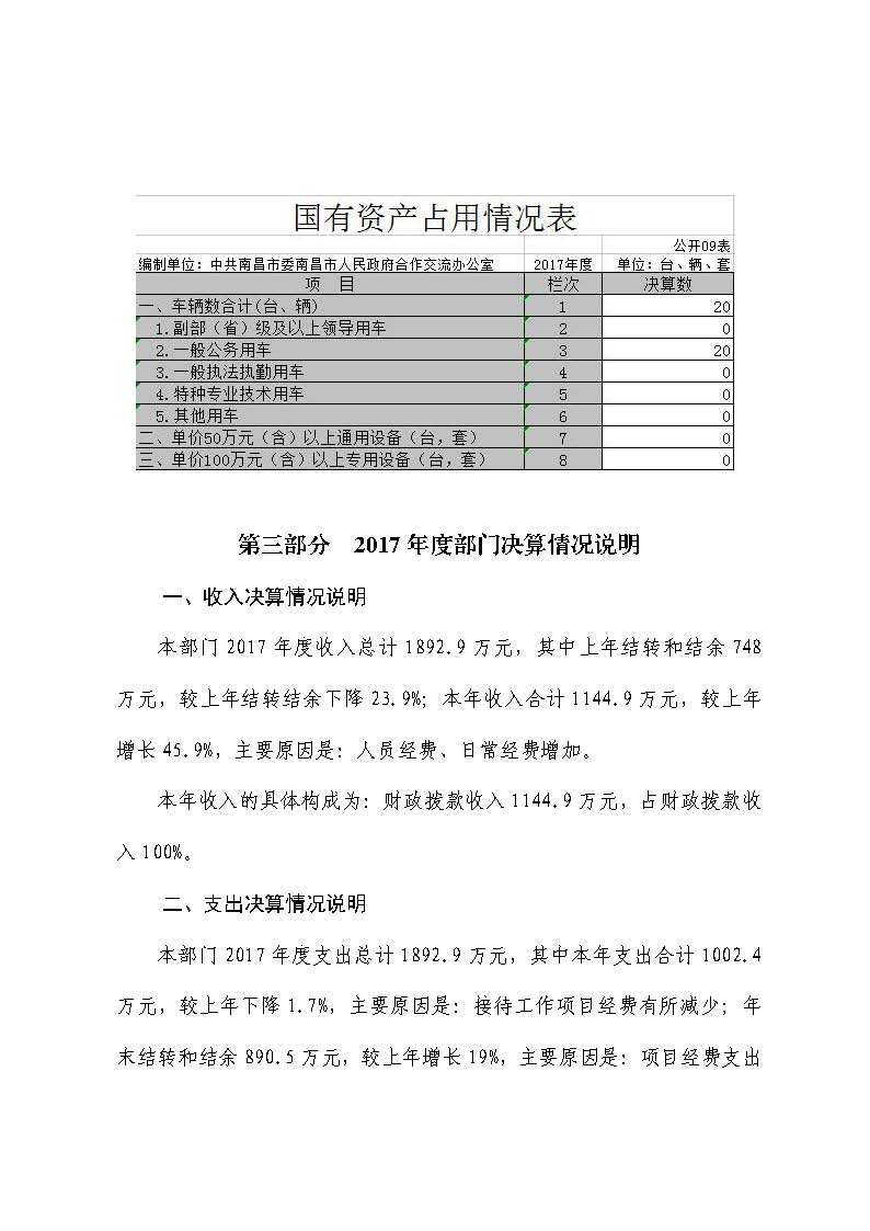 市合作交流辦部門(mén)2017年度部門(mén)決算