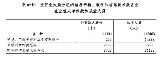在信息傳輸、軟件和信息技術(shù)服務(wù)業(yè)企業(yè)法人單位中,內(nèi)資企業(yè)占99.8%,港澳臺投資企業(yè)和外商投資企業(yè)合計占0.2%。