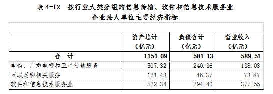 2023年末,信息傳輸、軟件和信息技術(shù)服務(wù)業(yè)企業(yè)法人單位資產(chǎn)總計1151.09億元,比2018年末增長96.4%;負債合計581.13億元,比2018年末增長75.6%。