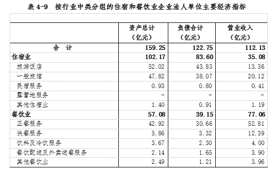 2023年末,住宿和餐飲業(yè)企業(yè)法人單位資產(chǎn)總計159.25億元,比2018年末增長44.1%;負債合計122.75億元,比2018年末增長76.0%。