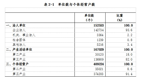 2023年末,全市共有從事第二產業和第三產業活動的法人單位15.26萬個,比2018年末增加8.10萬個,增長113.3%;產業活動單位[1]16.70萬個,增加8.56萬個,增長105.2%;個體經營戶40.92萬個,增加24.84萬個,增長154.4%。